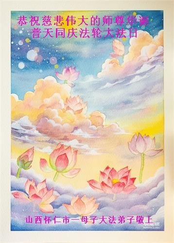 山西怀仁市一母子大法弟子恭祝慈悲伟大的师尊华诞!恭贺法轮大法日!