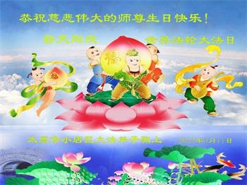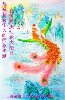 恭祝恩师生日快乐!恭祝世界法轮大法日 山西阳泉大法弟子恭祝慈悲伟大的师尊生日快乐!恭贺法轮大法日!