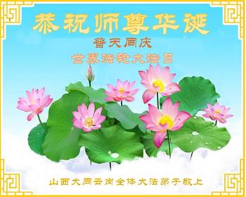 山西大同云岗区大法弟子恭祝师尊华诞!普天同庆世界法轮大法日!