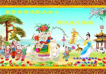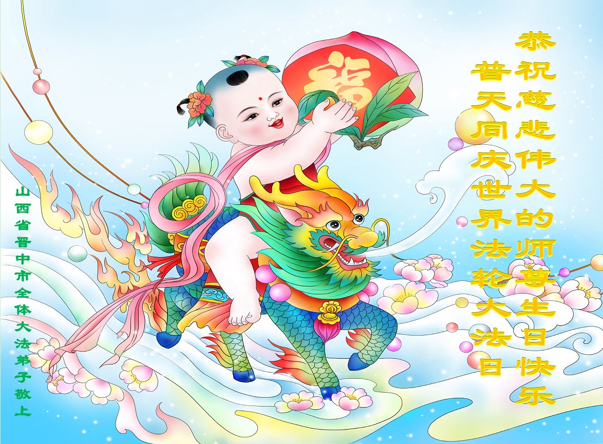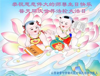 庆祝世界法轮大法日! 山西省晋中市全体大法弟子恭祝慈悲伟大的师尊生日快乐!恭贺世界法轮大法日!