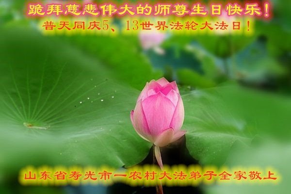 山东潍坊市大法弟子和大法小弟子及家人恭祝师尊生日快乐! 谢谢师父慈悲救度! 山东省潍坊一大法弟子全家庆贺法轮大法日!恭祝师父生日快乐!