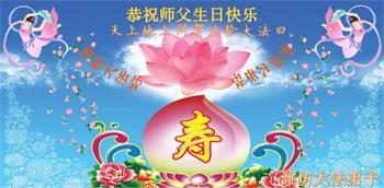 恭贺世界法轮大法日! 慈悲伟大的师尊,您辛苦了! 谢谢您对我们全家的慈悲救度和时时保护,弟子一定听您的话,静心学法,比学比修,向内修,向内找,形成整体,救度更多世人,完成使命,跟师父回家。 祝师父生日快乐!叩拜师父! 山东潍坊市临朐县大法弟子恭祝慈悲伟大的师尊生日快乐!