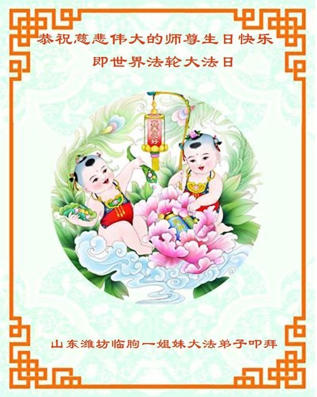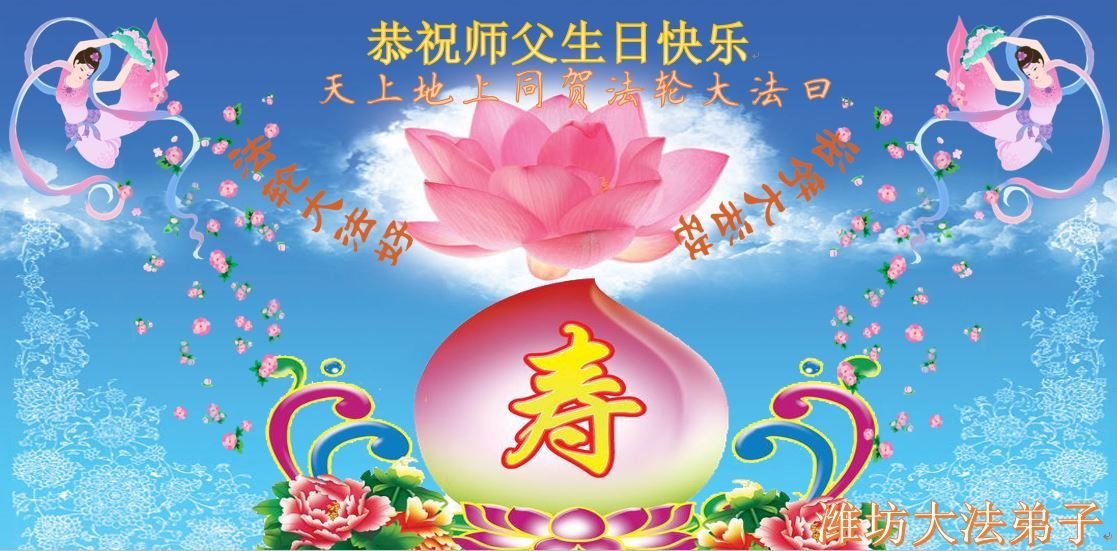 恭祝师父生日快乐!普天同庆法轮大法日! 山东省潍坊奎文大法弟子恭祝慈悲伟大的师尊生日快乐!