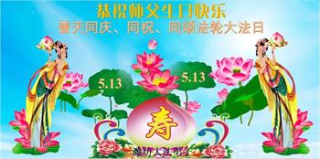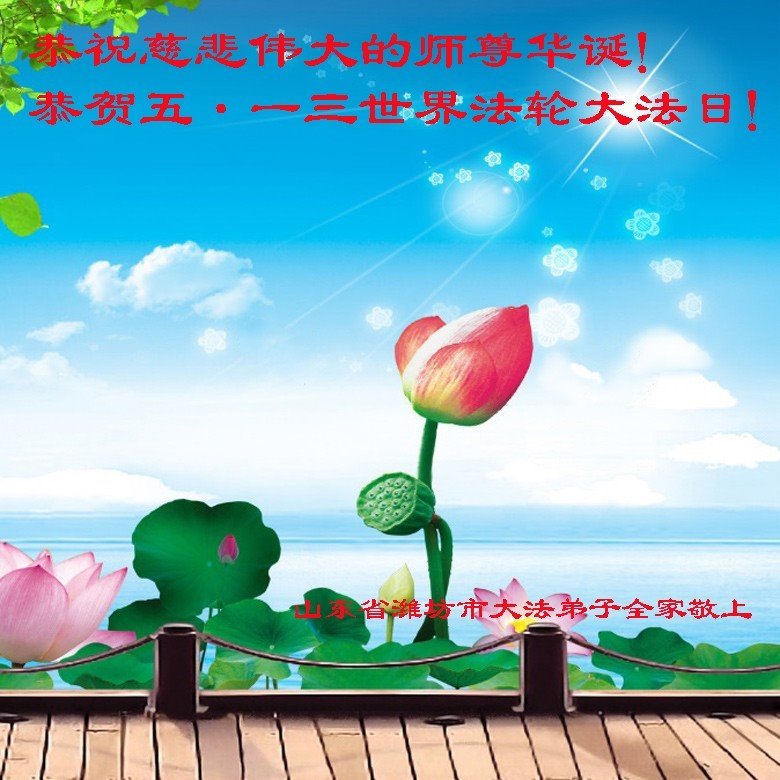 庆祝5.13世界法轮大法日! 山东省潍坊市一大法弟子敬贺世界法轮大法日!弟子恭祝慈悲伟大的师尊生日快乐!