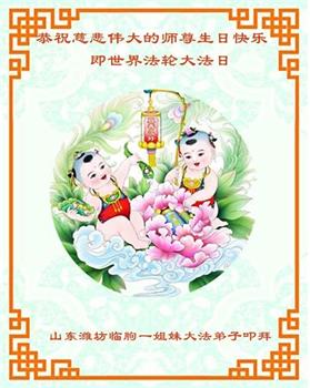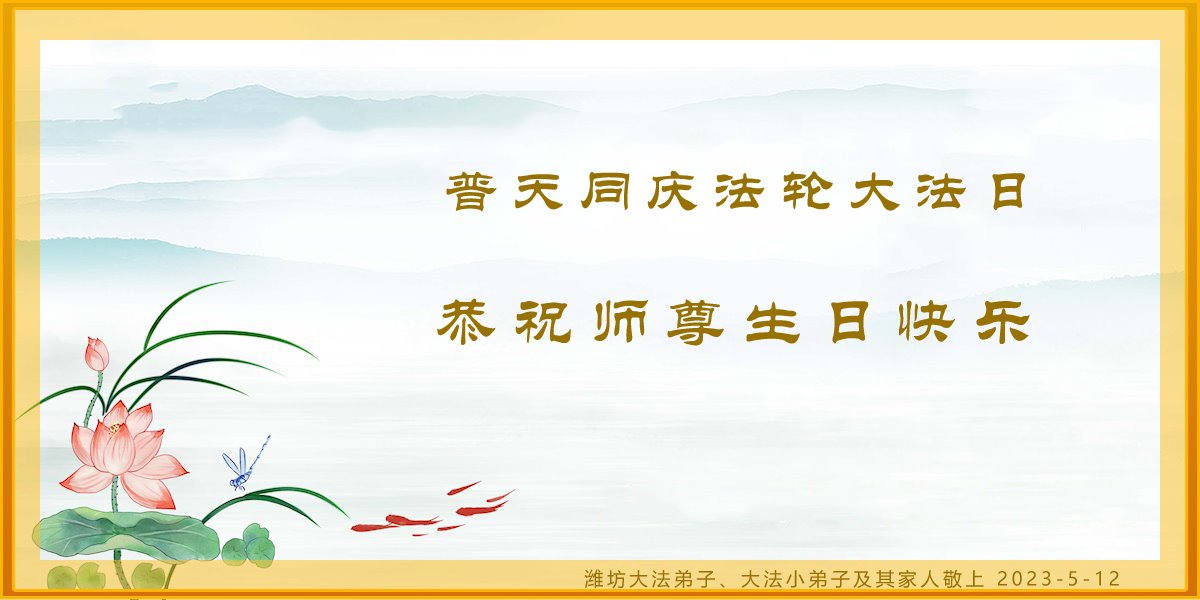 恭贺世界法轮大法日! 山东潍坊市大法弟子和大法小弟子及家人恭祝师尊生日快乐!