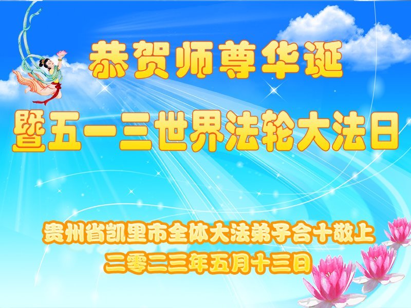 贵州省凯里市全体大法弟子合十敬上 二零二三年五月十三日 贵州省安顺市大法弟子恭祝师父生日快乐!普天同庆5·13世界法轮大法日!