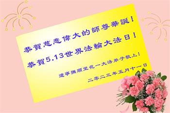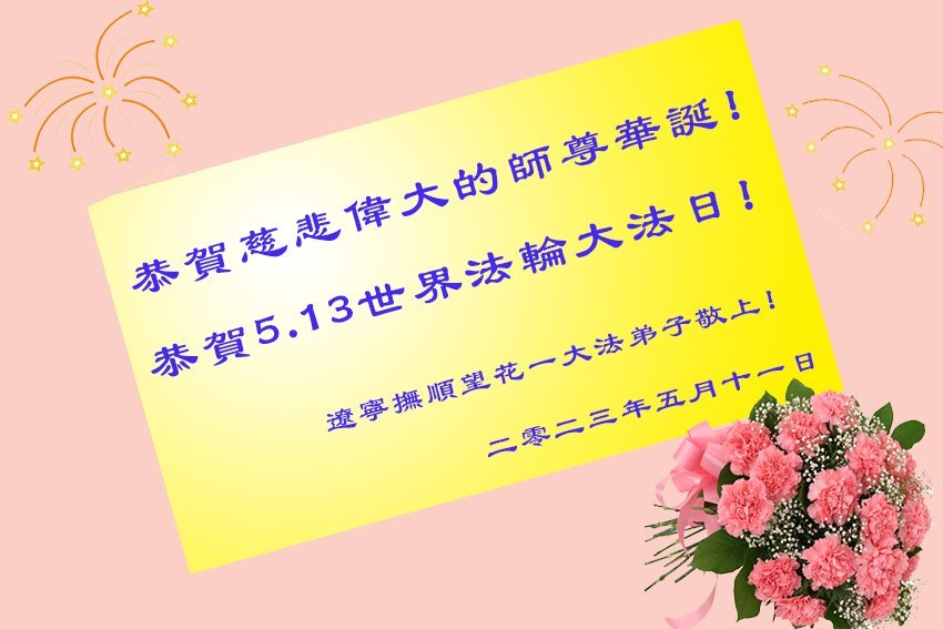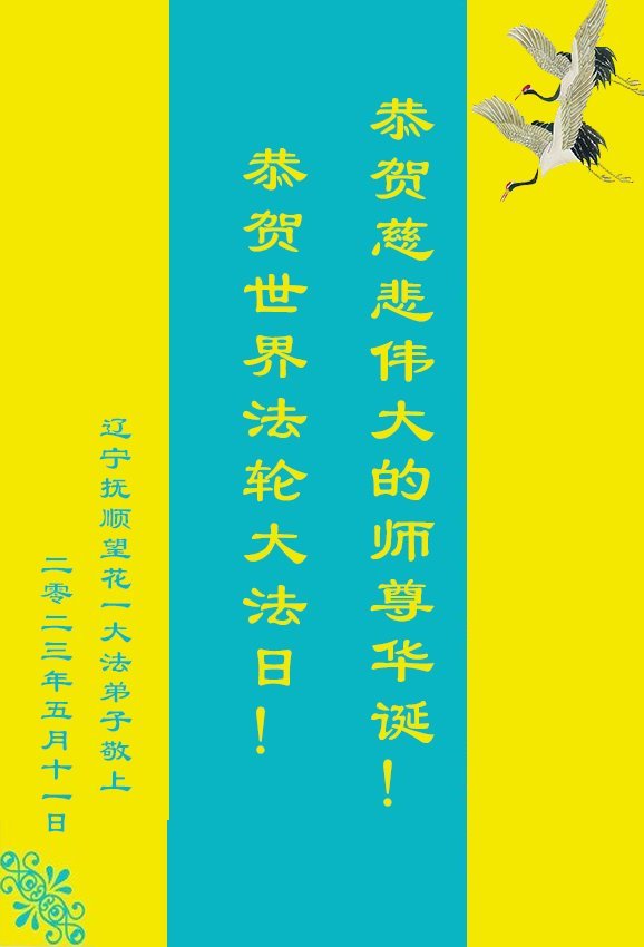 【明慧网二零二三年五月十四日】 辽宁抚顺市顺城区一大法弟子恭祝师尊生日快乐!