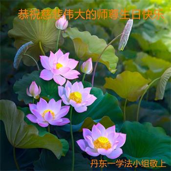 师父您辛苦了,祝您生日快乐!我们学法小组,在师父的保护下,走到今天。我们只有多学法,互相圆容,多发正念,解体邪恶,多救人,兑现誓约。 辽宁丹东一学法小组大法弟子敬贺 辽宁铁岭市一大法弟子恭祝师尊生日快乐!