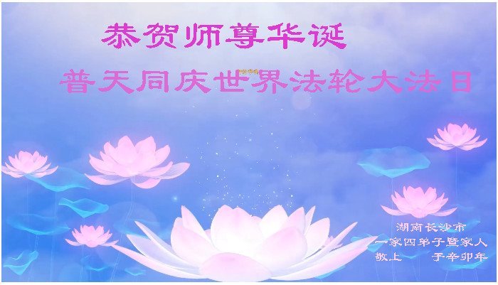 湖南长沙市一家四弟子及家人恭贺师尊华诞!普天同庆世界法轮大法!