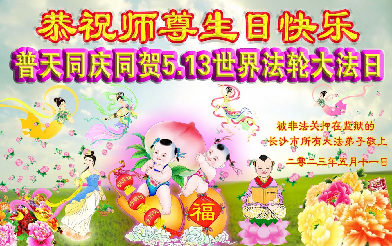 慈悲伟大的师尊:您好! 弟子感恩您的佛恩浩荡,感恩您的慈悲苦度,是师尊您牵着弟子的手,走到了今天。做的好的时候,您总是鼓励我,让我感受到修炼的殊胜与美好。回忆自己修炼的点点滴滴,弟子泪流满面,能成为您的弟子,是我永生的荣耀!弟子唯有修好自己,承担起大法弟子的责任与使命,做好三件事,以报师恩。 在您七十二华诞到来暨大法弘传三十一周年之际,弟子携家人恭祝您生日快乐!您辛苦了!法轮大法好!真善忍好!叩拜 合十 二零二三年五月六日 被非法关押在监狱的湖南长沙市所有大法弟子恭贺世界法轮大法日暨师尊华诞!