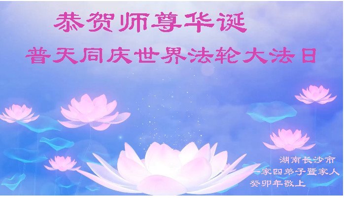 湖南长沙市一家四弟子及家人恭贺师尊华诞!普天同庆世界法轮大法日!