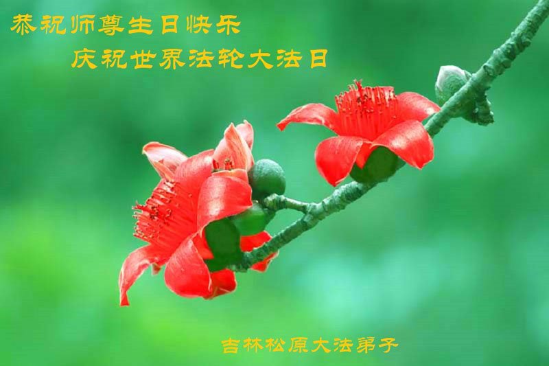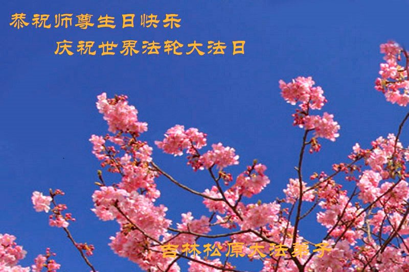 感恩师尊慈悲救度!弟子们要学好法,做好三件事,共同提高,完成使命,随师尊回家。 弟子们跪拜师尊!合十 吉林大法弟子恭祝师尊生日快乐!普天同庆世界法轮大法日!