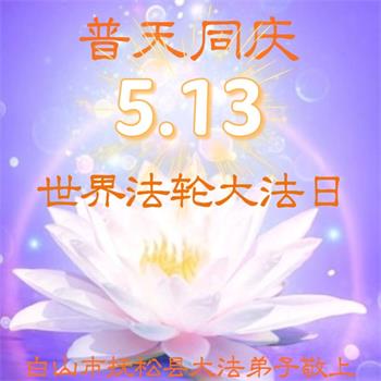 恭祝世界法轮大法日! 感恩师尊的慈悲救度! 吉林省白山市五位大法弟子恭祝师尊生日快乐!