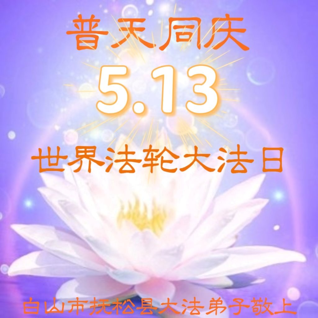 吉林省通化地区大法弟子与家人恭祝师尊生日快乐! 并与全世界众生同庆世界法轮大法日! 感恩师尊伟大圣恩,感恩师父对众生的无比慈爱。谢谢师父的慈悲救度。大法弟子要以助师正法,修己救人为己任。谢谢师父!师父辛苦了!合十 吉林省白山市抚松县全体大法弟子恭祝慈悲伟大的师尊生日快乐暨世界法轮大法日!