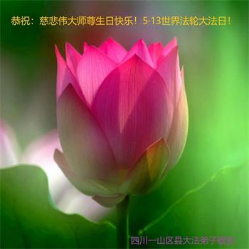 恭贺五·一三世界法轮大法日! 四川一山区县大法弟子敬贺 二零二三年五月十一日 四川德阳市中区一老年女大法弟子恭祝师尊生日快乐!