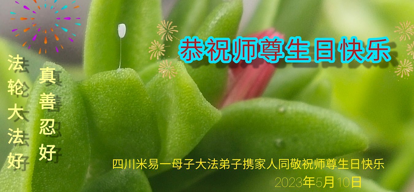 谢谢师尊慈悲救度! 法轮大法好!真善忍好! 米易县三名大法弟子拜上 二零二三年五月十日 四川省广安市邻水县一大法弟子和家人恭祝慈悲伟大的师父生日快乐!