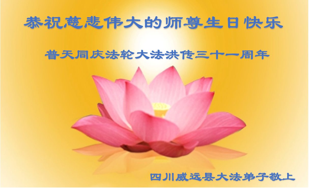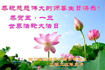 恭祝慈悲伟大的师尊生日快乐! 同贺世界法轮大法日! 四川宜宾市全体大法弟子恭祝师尊生日快乐!