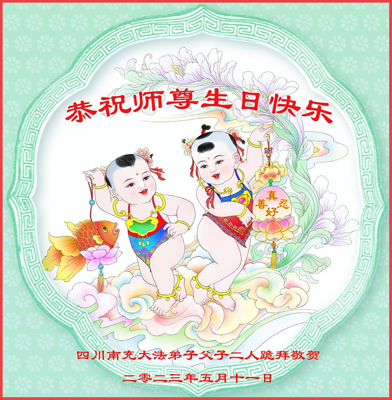 四川南充市父子俩大法弟子恭祝师尊生日快乐! 二零二三年五月十一日 四川南充市大法弟子全家十人恭祝师尊生日快乐!