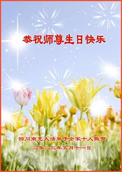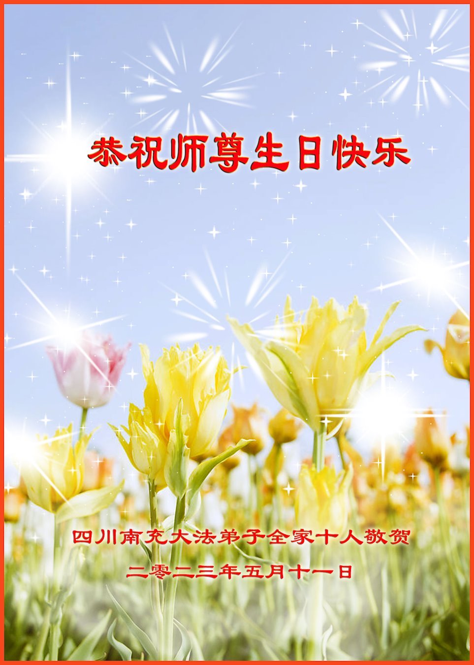 四川南充大法弟子全家十人恭祝师尊生日快乐! 二零二三年五月十一日 四川遂宁市大法弟子恭祝师尊生日快乐!
