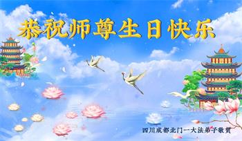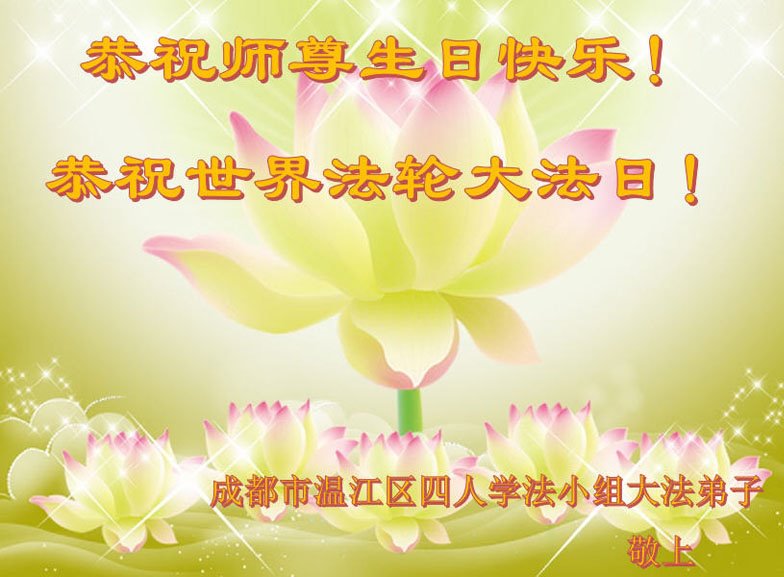 四川成都温江区大法弟子恭祝慈悲伟大的师父华诞!(3则)