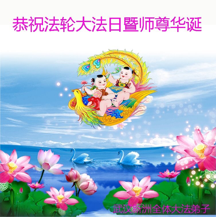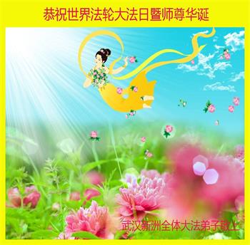 恭贺法轮大法洪传世界三十一周年! 感谢师尊慈悲救度! 湖北武汉市教育系统大法弟子恭祝慈悲伟大的师父生日快乐!