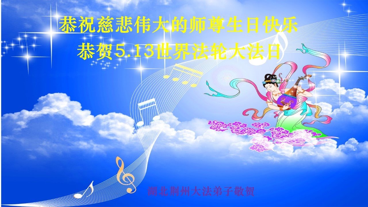 恭贺五·一三世界法轮大法日! 湖北荆州大法弟子恭贺5.13世界法轮大法日!恭祝师尊生日快乐!
