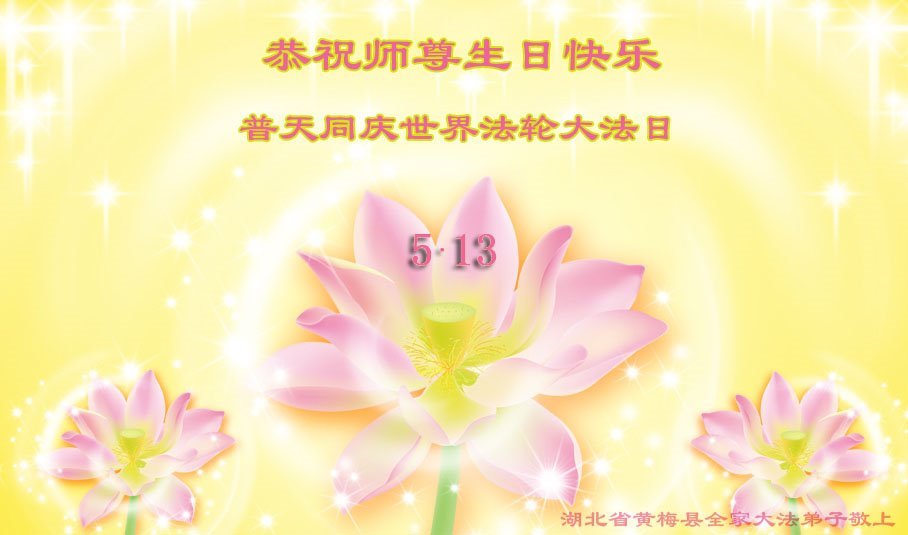 湖北省黄冈市黄梅县一家大法弟子恭祝师父华诞!普天同庆世界法轮大法日!