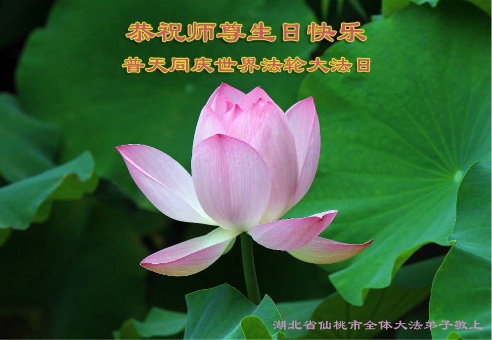 湖北省仙桃市全体大法弟子恭祝慈悲伟大的师尊生日快乐!