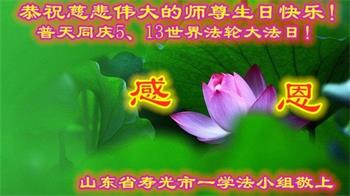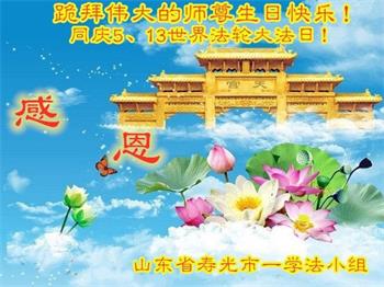 山东省潍坊市一学法小组大法弟子恭祝师尊生日快乐!恭贺世界法轮大法日!