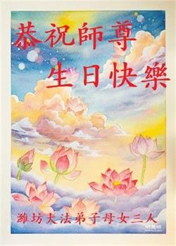 山东省潍坊大法弟子母女三人恭祝师尊生日快乐!