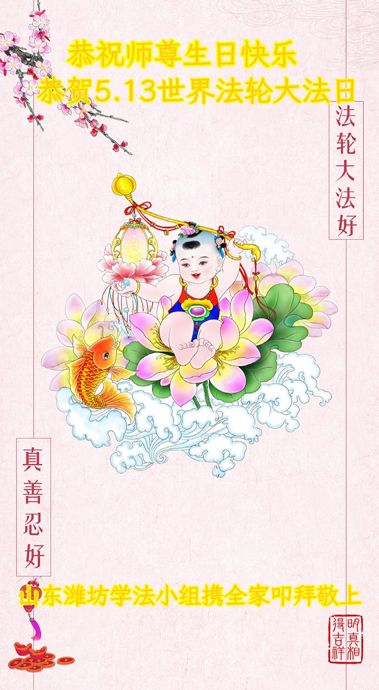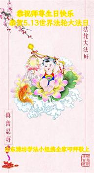 山东省潍坊市一学法小组大法弟子恭祝师父生日快乐!庆祝5.13世界法轮大法日!