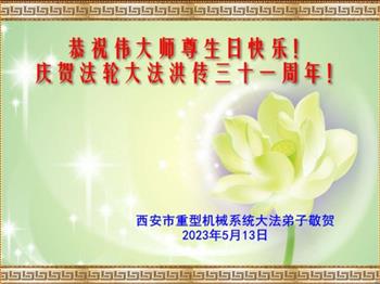 陕西西安市重型机械系统大法弟子恭祝伟大师尊生日快乐!庆贺法轮大法洪传三十一周年!