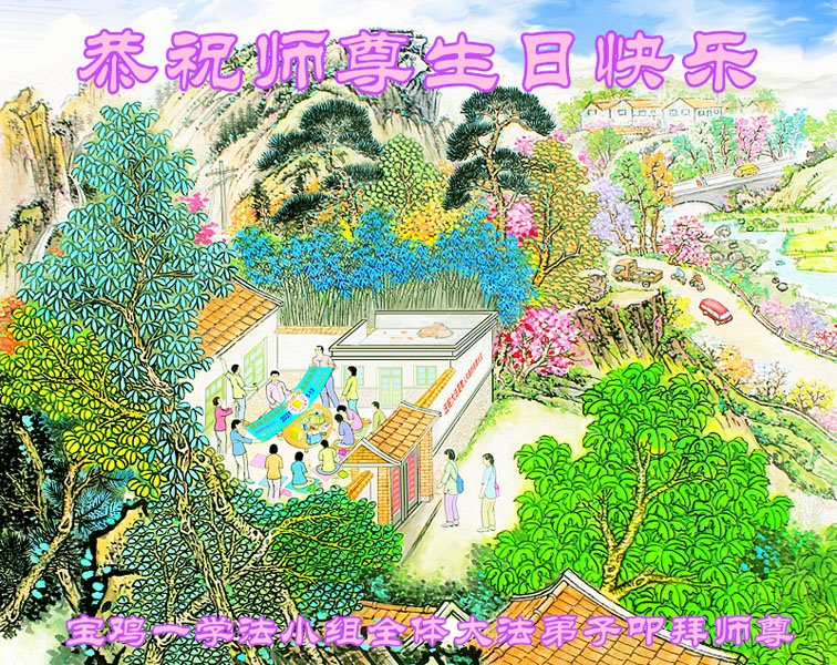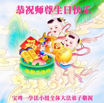 感谢师尊救度洪恩!我们学法小组虽然大多数都是些老年同修,但大家都能够互帮互助,比学比修,用大法的法理归正自己,善待他人。 陕西岐山一学法小组全体大法弟子恭祝师尊生日快乐!
