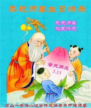 恭贺世界法轮大法日!在这普天同庆的日子里我们唯有感恩、感恩!做好大法弟子该做的事多救人。谢谢师尊! 陕西省汉中市勉县学法小组大法弟子敬上 二零二三年五月十二日 师尊您好!恭祝师尊生日快乐!恭贺世界法轮大法日!