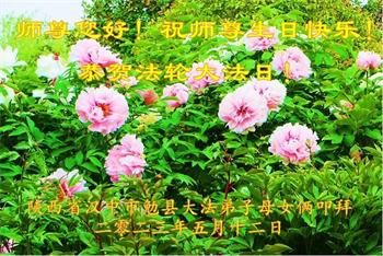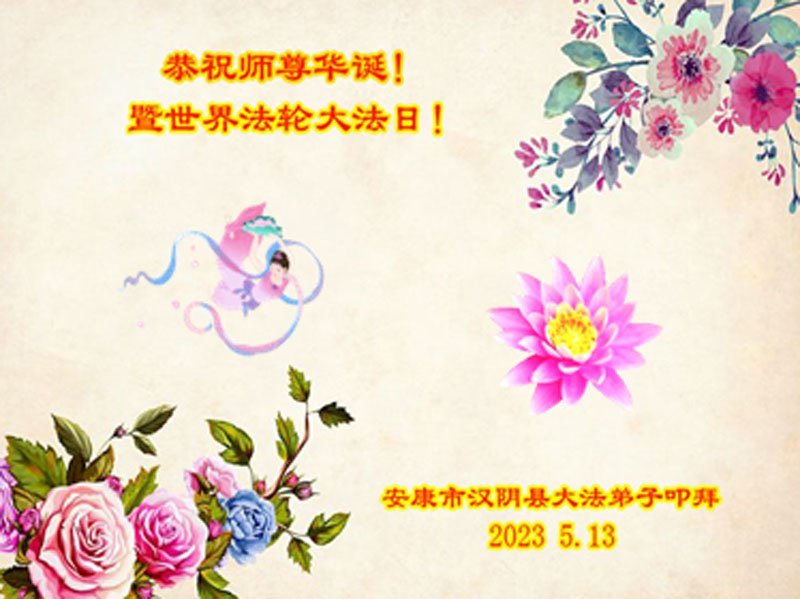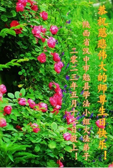 【明慧网二零二三年五月十四日】 陕西省汉中市勉县学法小组大法弟子恭祝慈悲伟大的师尊生日快乐!