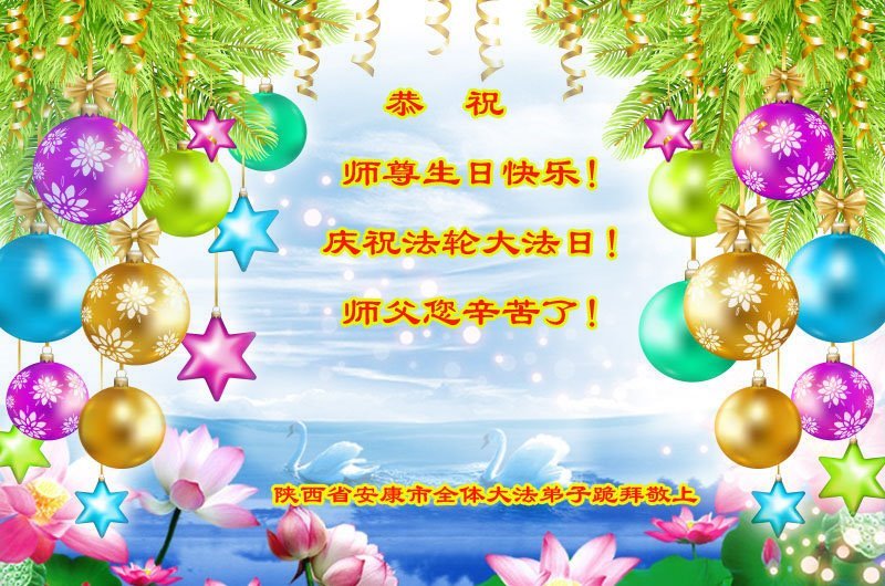 陕西省安康市全体大法弟子恭祝师尊生日快乐!庆祝法轮大法日!