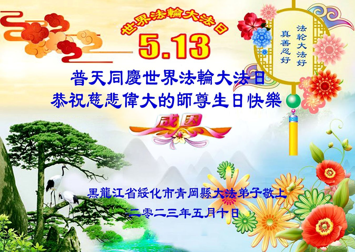 黑龙江省绥化市青冈县大法弟子恭祝慈悲伟大的师尊生日快乐!庆祝5·13世界法轮大法日!庆祝法轮大法洪传三十一周年!