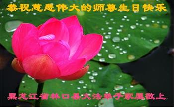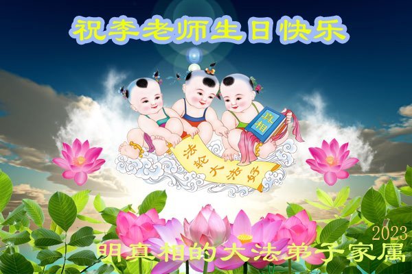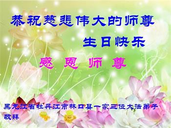 我是一名大法弟子的家属,十几年来沐浴在大法的佛光中,受益多多。衷心的感恩师尊! 恭祝慈悲伟大的师尊生日快乐!万事如愿! 黑龙江省林口县一位大法弟子家属敬上 黑龙江省明真相的大法弟子家属恭祝李老师生日快乐!