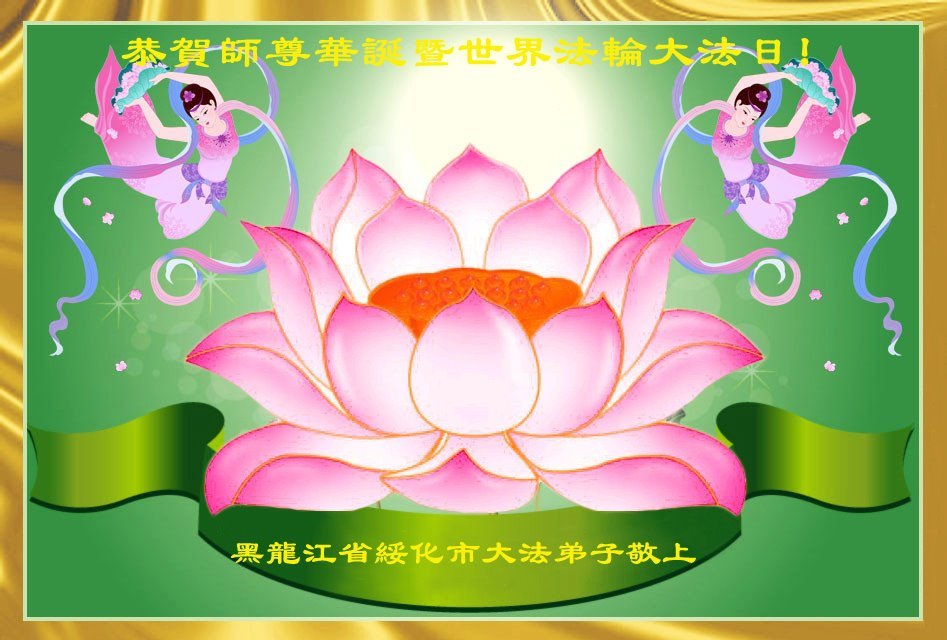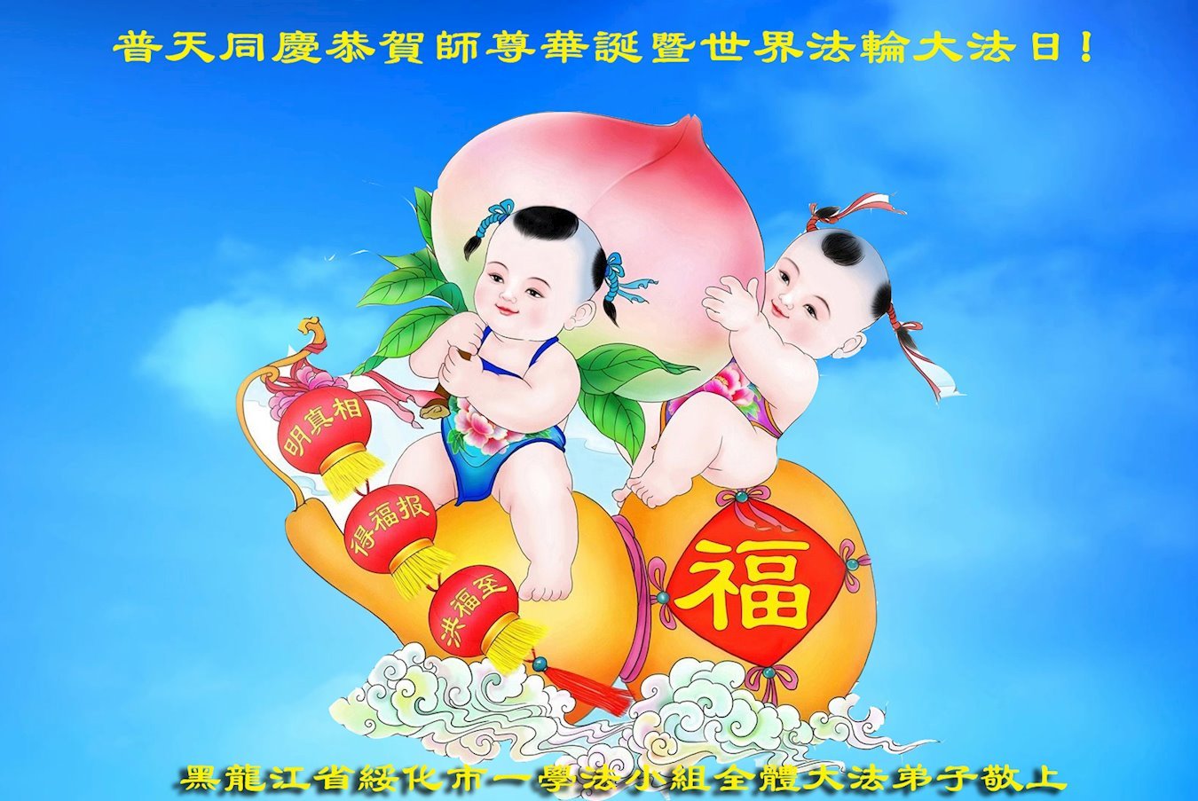 恭贺法轮大法日!祝师尊生日快乐! 法轮大法好!真、善、忍好! 黑龙江明真相一世人敬上 黑龙江大法弟子恭祝师父生日快乐!恭贺世界法轮大法日!