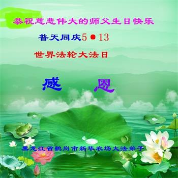 祝贺世界法轮大法日! 黑龙江省鹤岗市新华农场大法弟子恭祝慈悲伟大的师父生日快乐!
