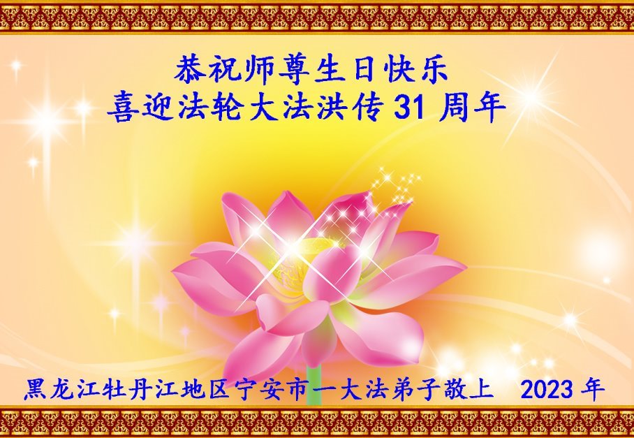 让师父放心,尽量多救人,磨难中一切都有师父管。谢谢师父为不争气弟子的承受。弟子会更精進,坚定走好师父给安排的修炼道路,圆满跟师父回家。 黑龙江省绥化市—大法弟子敬上 2023年5月9日 黑龙江省牡丹江市林口县一位大法弟子家属恭祝慈悲伟大的师尊生日快乐!
