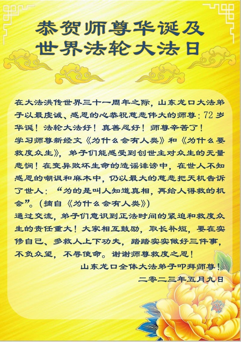 山东省烟台市龙口市大法弟子及家人贺师尊华诞!