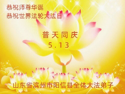 山东省滨州市阳信县全体大法弟子恭祝慈悲伟大的师尊生日快乐!