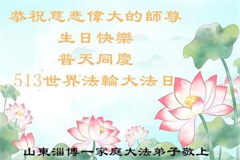 山东淄博周村全体大法弟子恭贺五·一三世界法轮大法日!恭祝慈悲伟大的师尊生日快乐!