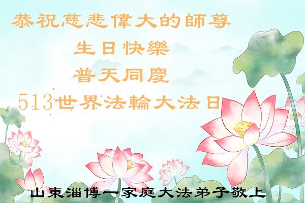 山东淄博淄川全体大法弟子恭贺五·一三世界法轮大法日!恭祝慈悲伟大的师尊生日快乐!