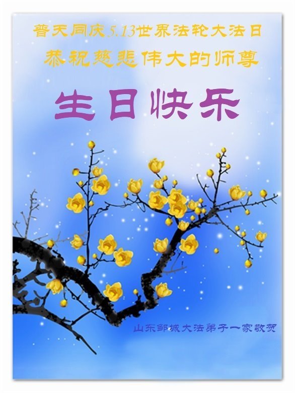 山东邹城大法弟子一家恭祝师尊生日快乐!