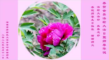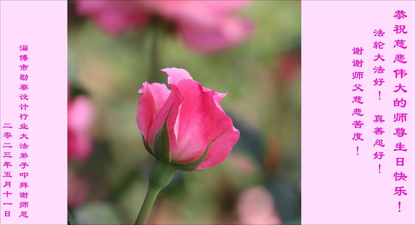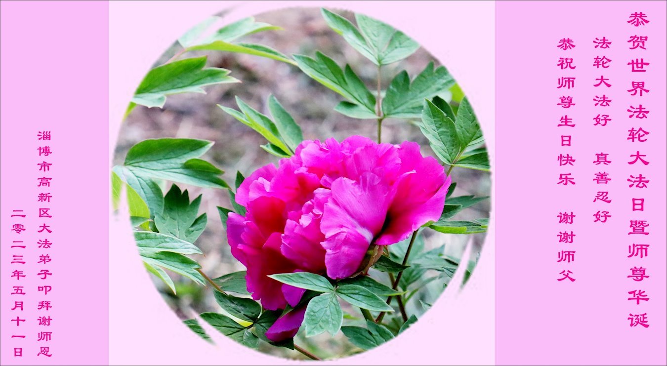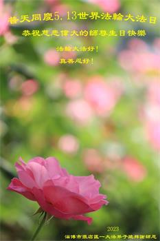 【明慧网二零二三年五月十四日】 山东省淄博市张店区一大法弟子恭祝慈悲伟大的师尊华诞暨世界法轮大法日!