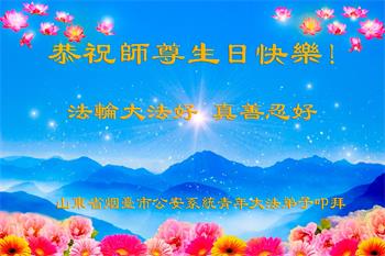 山东省烟台市公安系统青年大法弟子,祝愿师尊生日快乐!普天同庆世界法轮大法日! 山东省淄博市勘察设计行业大法弟子恭祝慈悲伟大的师尊生日快乐!谢谢师父慈悲苦度!