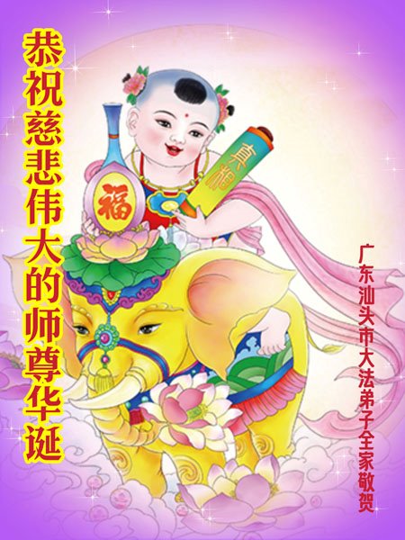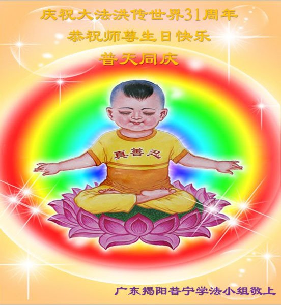 感恩师尊慈悲救度看护,您辛苦了!弟子叩谢师尊。 广东揭阳普宁全家大法弟子恭祝师尊生日快乐!普天同庆世界法轮大法日!