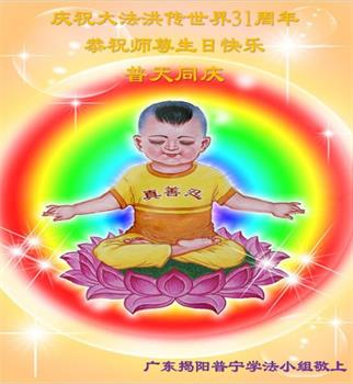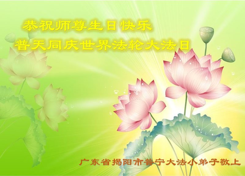 广东揭阳普宁大法小弟子恭祝师尊生日快乐!
